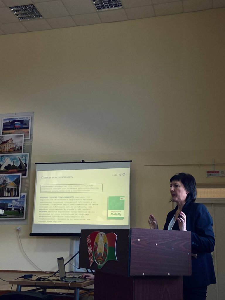 Силами медицинских работников учреждения 16.04.2026 на базе ГОК ЦОР г.Гродно и 23.04.2026 на базе Лидского УОР был проведен семинар «Допинг. Список запрещенных субстанций и методов 2026 г. Последствия употребления допинговых препаратов. Процедура допинг-контроля. Санкции».